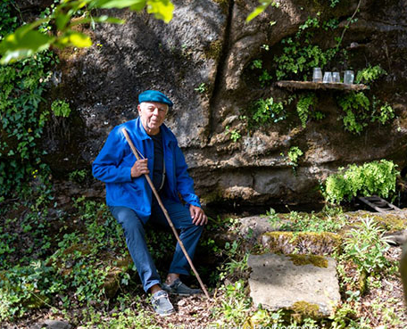 Quand Jean-Marc arrive avec ses baladeurs du jour à la fontaine du Mas Bonnet, c’est là qu’entre en scène celui qui aurait bien cent ans aujourd’hui, le fameux Batistou. Conter est un art que Jean-Marc Pertus, riche d’une verve bien connue, maîtrise parfaitement, au point de faire appeler par ceux qui l’accompagnent, celui qui aurait pu être un cousin lointain. « Ohé Batistou, tu montes ? On t’attend ». Et comme notre personnage ne finit jamais par pointer son nez, on finit par découvrir rapidement que dans cette fontaine, il y a une bouteille au frais avec de verres. Fort de son talent, Jean-Marc Pertus n’hésite pas à proposer un verre en disant que si le Batistou l’y a mis c’est parce qu’il voulait ainsi remercier ceux qui venaient faire mémoire de lui. Découvrez la suite avec cet « conteur accompagnateur » comme il se plaît à se présenter.